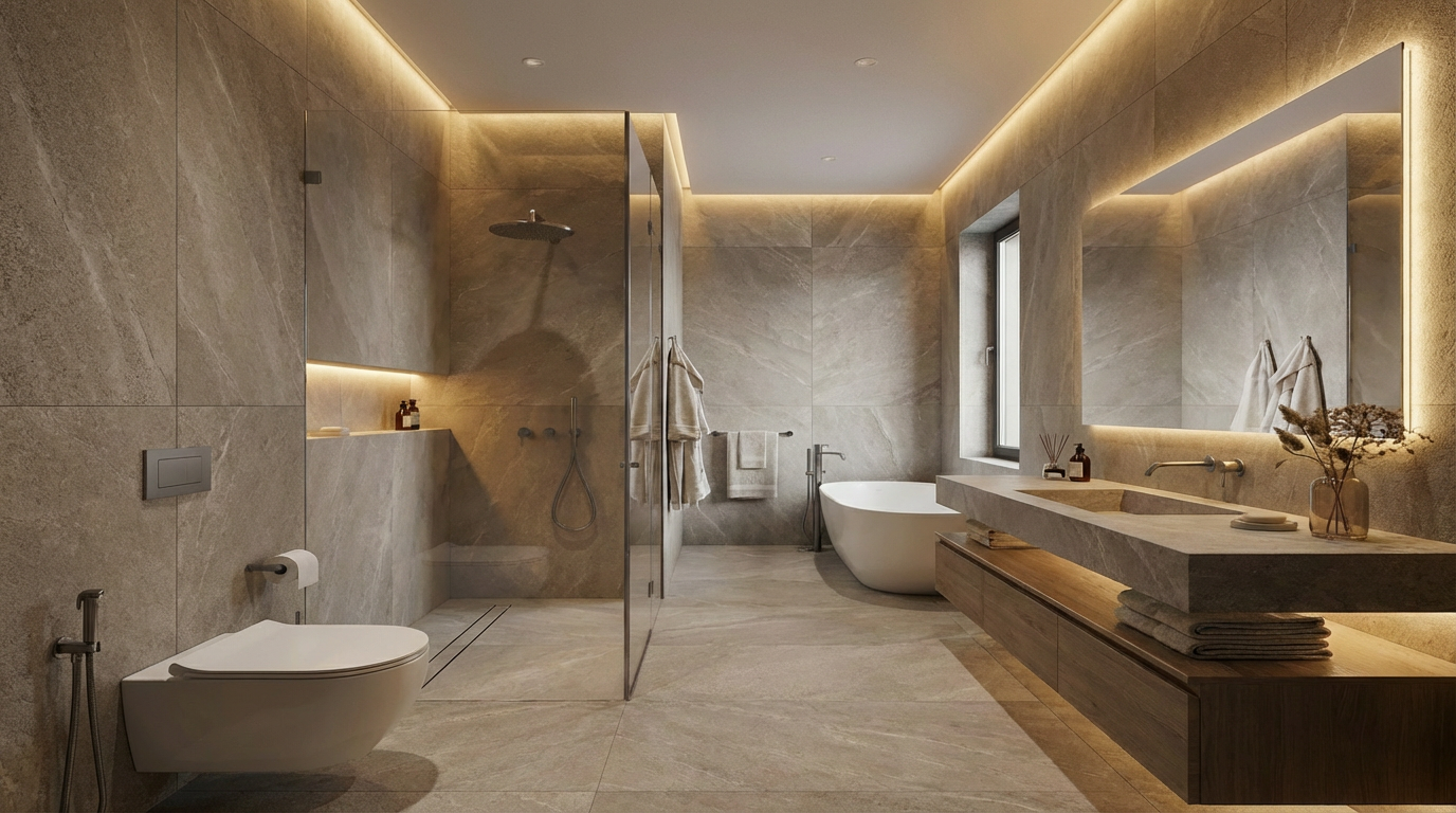 A truly well-designed bathroom relies on proportion, alignment, material continuity, and execution. When these elements are treated independently, the result feels fragmented - no matter how expensive the finishes are.