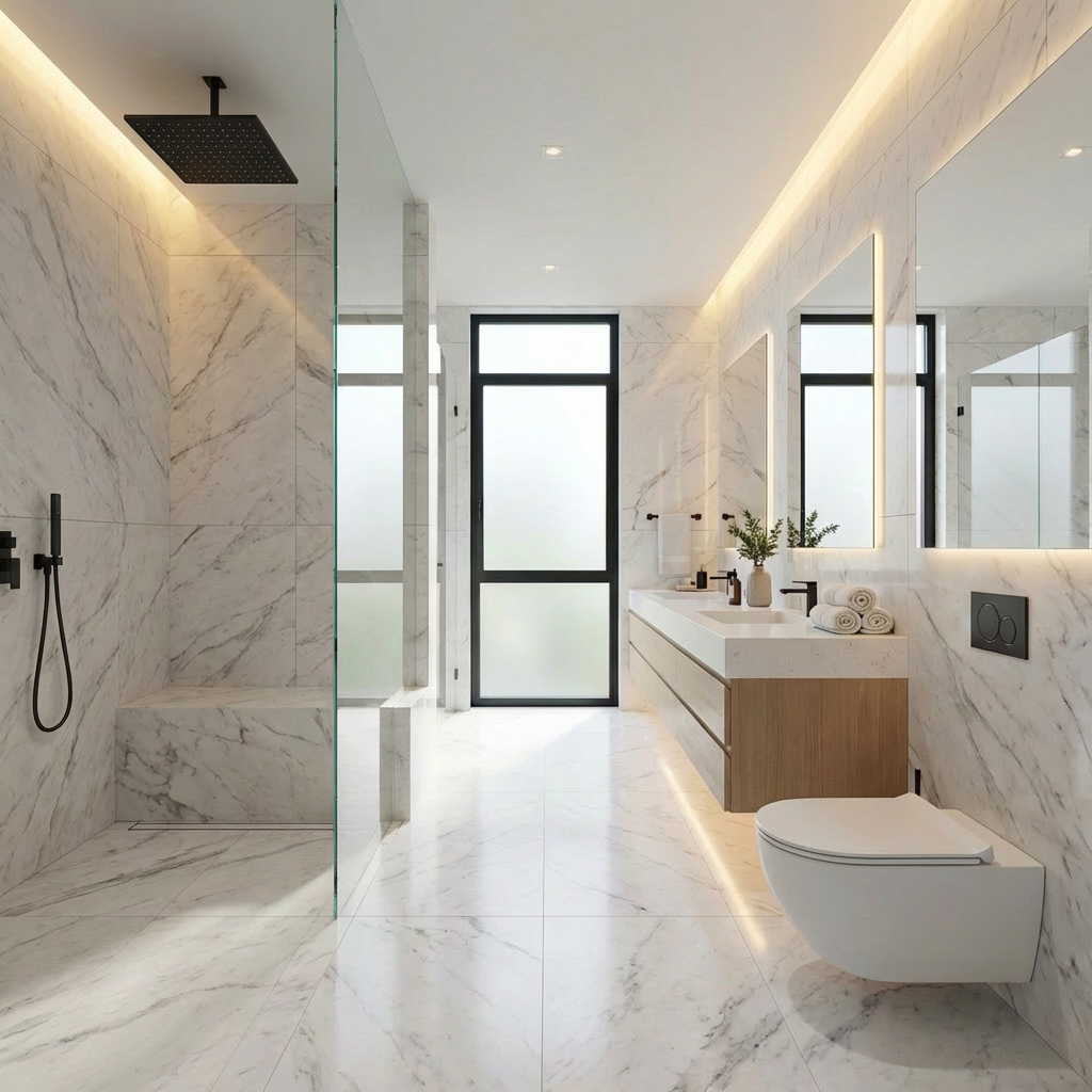 Design-led bathroom environments crafted with precision tile & stone - Built as cohesive, refined spaces, not piecemeal renovations.